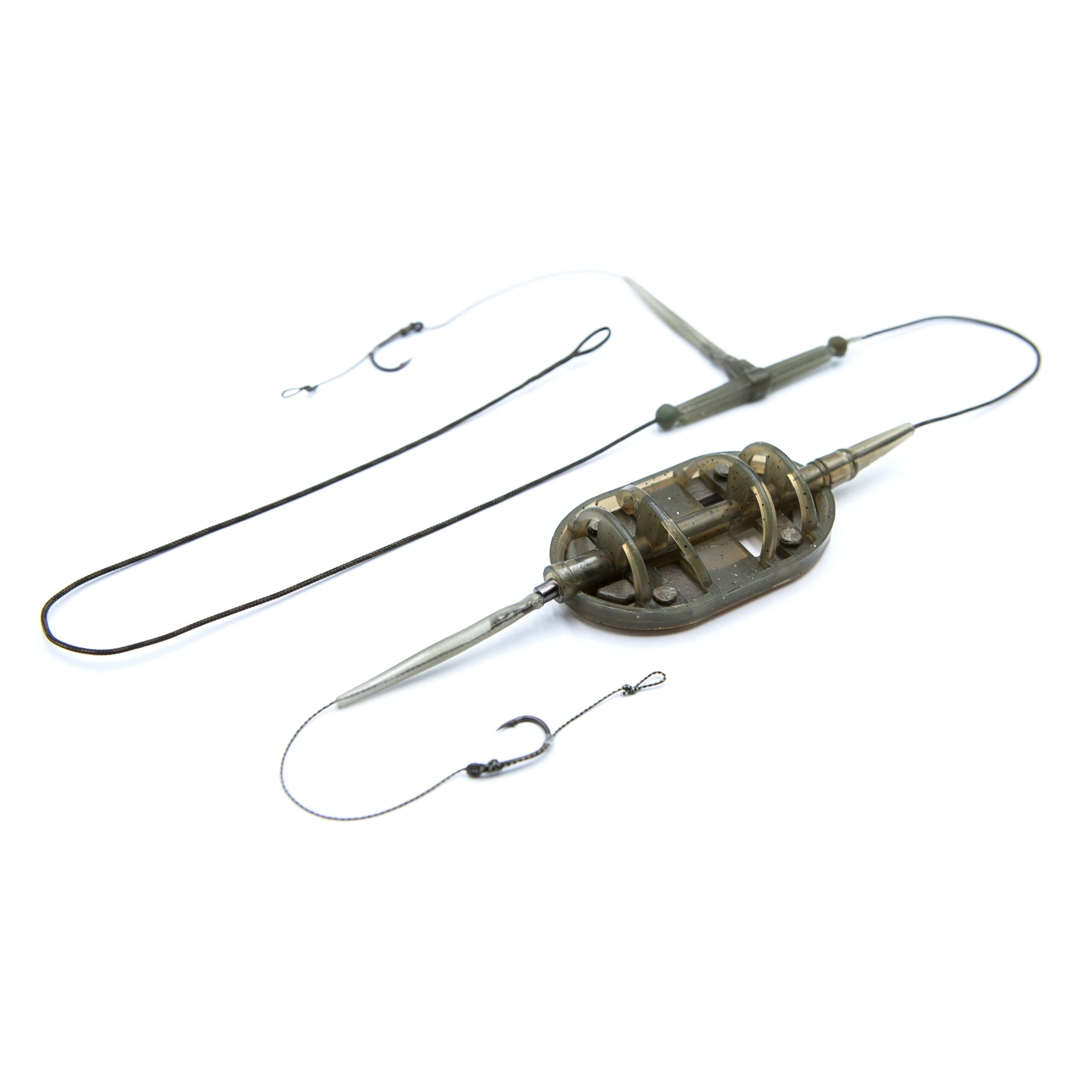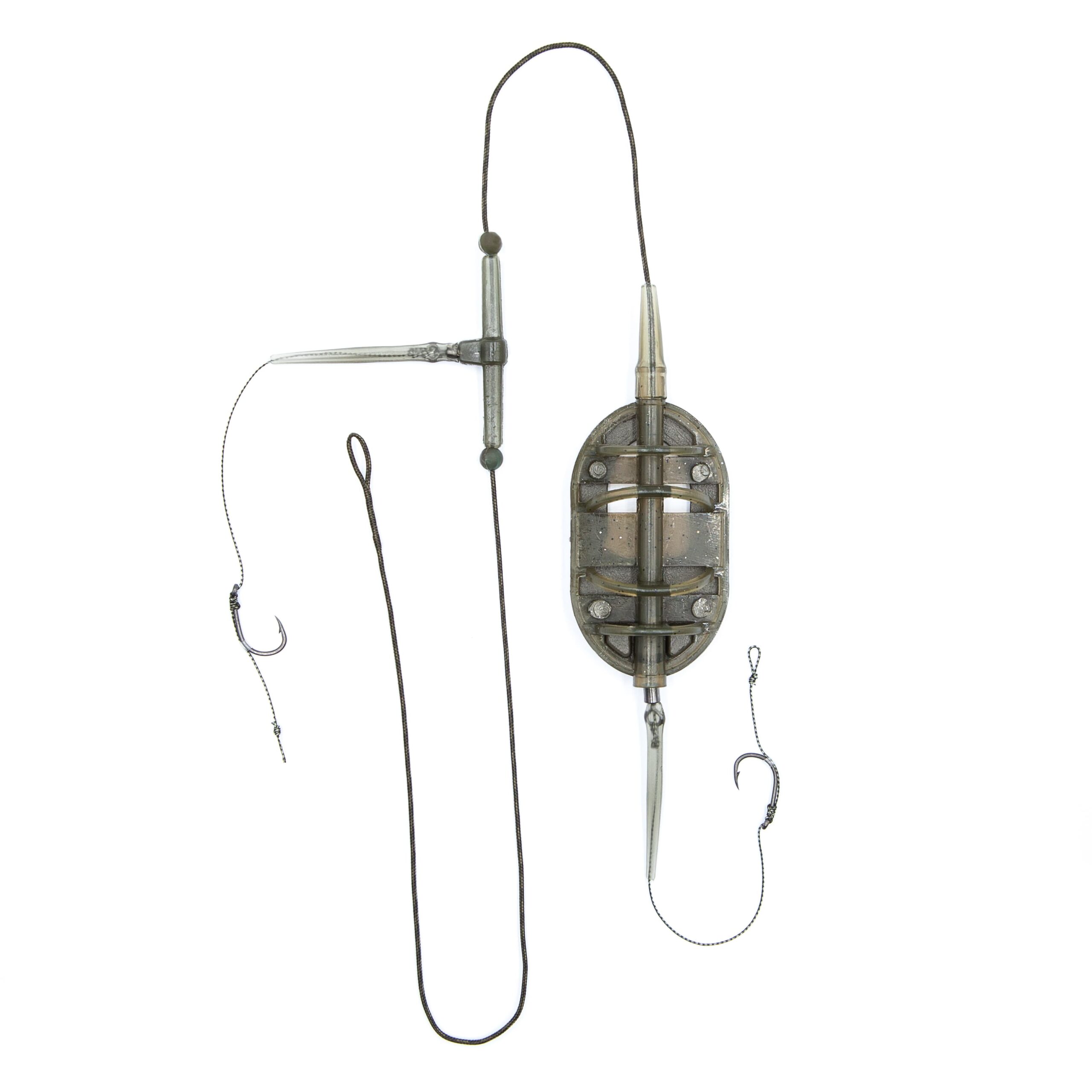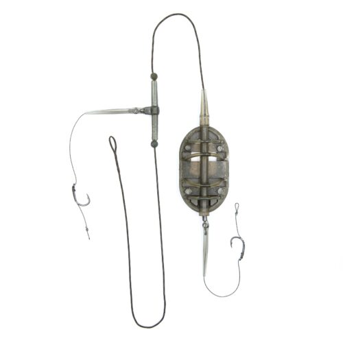 Cârligele cu tijă curbată, realizate din oțel cu conținut ridicat de carbon, sunt prevăzute cu un strat de teflon, care nu doar protejează eficient împotriva coroziunii, ci oferă cârligelor și un grad sporit de alunecare, permițând o penetrare mai bună în țesuturile moi ale peștelui. Acestea, legate pe un material special pentru forface, permit prezentarea simultană a două momeli — de exemplu, boilies și peleți — sau utilizarea diferitelor combinații pentru un plus de atractivitate. Cârligul superior este montat pe un braț lateral și permite reglarea independentă a distanței dintre cârlig și Momitor.