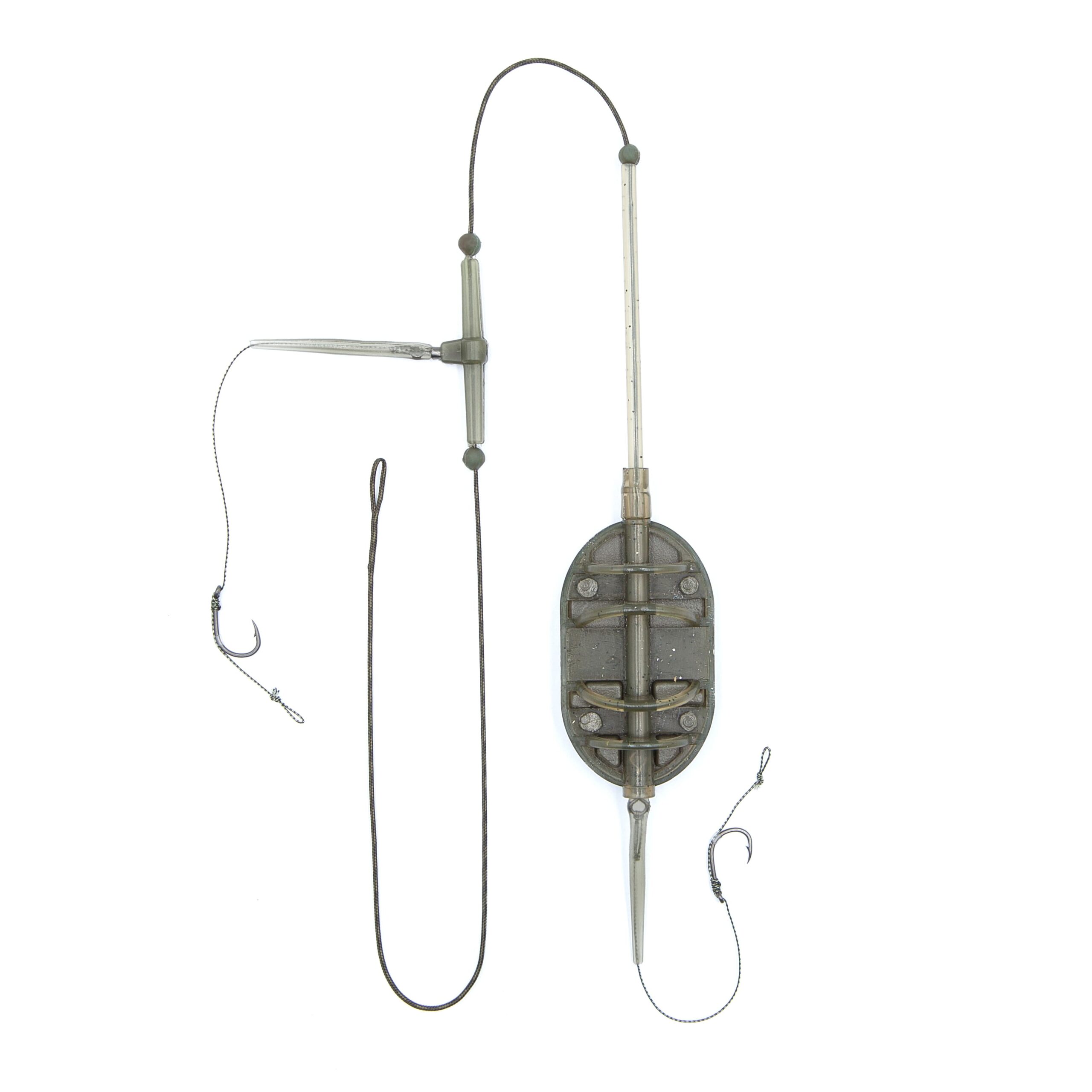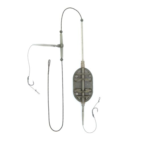 Cârligele cu tijă curbată, realizate din oțel cu conținut ridicat de carbon, sunt prevăzute cu un strat de teflon, care nu doar protejează eficient împotriva coroziunii, ci oferă cârligelor și un grad sporit de alunecare, permițând o penetrare mai bună în țesuturile moi ale peștelui. Acestea, legate pe un material special pentru forface, permit prezentarea simultană a două momeli — de exemplu, boilies și peleți — sau utilizarea diferitelor combinații pentru un plus de atractivitate. Cârligul superior este montat pe un braț lateral și permite reglarea independentă a distanței dintre cârlig și Momitor.
